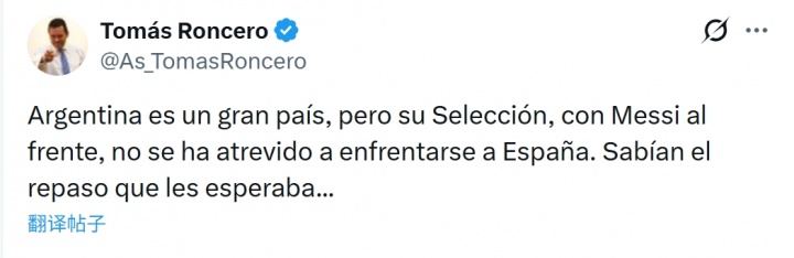 世界杯app下载-龙赛罗:梅西领衔的阿根廷不敢与西班牙较量,他们清楚将面临什么 03月15日讯 知名皇马球迷,阿斯报主编龙赛罗发布社媒,对欧美杯取消一事表达了自己的看法。龙赛罗在社媒写道:阿根廷是个伟大的国家,但由梅... 意甲 2026.04.12 0 2